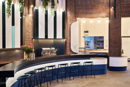 Так, Исходное открытое пространство завода площадью 360 м² было разделено на две равные функциональные зоны: в одной расположилась пивоварня, в другой — кафе.