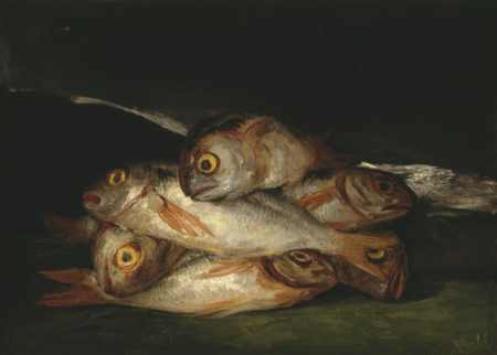 Франсиско де Гойя, Натюрморт с золотым лещом (1808–1812 гг.); How Fish Is Made, скриншот (2022 г.)