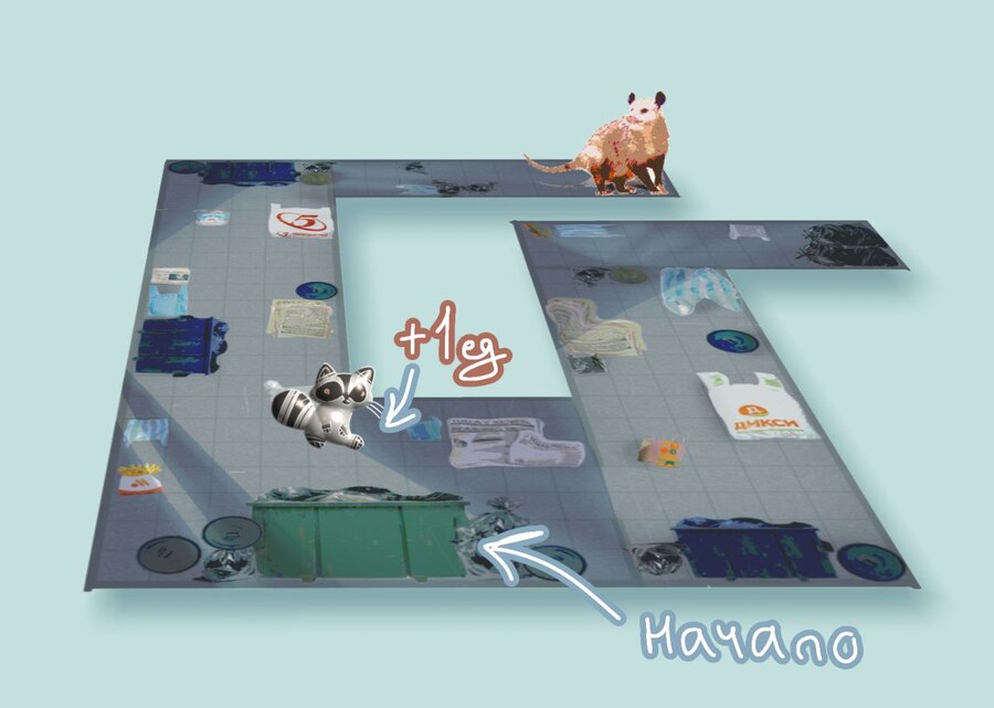 Вы — ракуны, а ваши бездомные соседи не рады вашей вылазке за припасами на неделю. Цель игры не быть сожранными и донести мешок с едой до вашей свалки обратно.