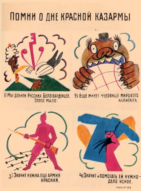 1. В. Маяковский «Отпускные красноармейцы, ВНИМАНИЕ!», «Окна РОСТА» 1920 г. 2. В. Маяковский «Помни о дне Красной казармы», «Окна РОСТА» 1920 г.