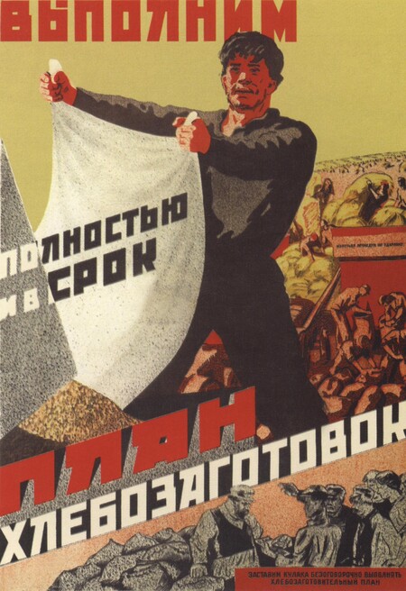 В 1930‑е на первый план вышли темы индустриализации, коллективизации и культурной революции. Главным героем плаката стал рабочий, а женщина изображалась как равноправный труженик.