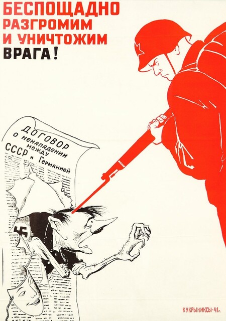 Советское плакатное искусство достигло наивысшего расцвета в годы Великой Отечественной войны. Главной задачей этого вида графического искусства была агитация: плакаты призваны были пробуждать сильные эмоции и мотивировать людей к активным действиям. Став мощным оружием в борьбе с гитлеровской Германией, плакат объединял в себе выразительную визуальную форму и лаконичные, ёмкие тексты. Благодаря простоте восприятия и технологичности печати эти произведения были доступны для всего населения. Размещённые на центральных улицах, они гарантированно достигали широкой аудитории, донося ключевые идеи до каждого гражданина. [2]