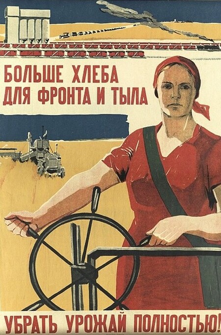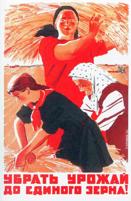 1. Т. Ерёмина «Убрать урожай до единого зерна!» 1941 г. 2. Н. Денисов, Н. Ватолина «Больше хлеба для фронта и тыла. Убрать урожай полностью» 1941 г.