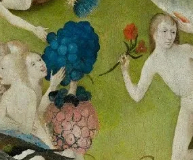 Яркий контраст организованным садам Мадонны —fantastический мир Босха. В этом месте растения порой утрачивают свою ботаническую идентифицируемость и преобразуются в смешанные, практически сюрреалистические формы. Они выступают частью запутанной метафоры греха, распущенности и безуспешности временных удовольствий.