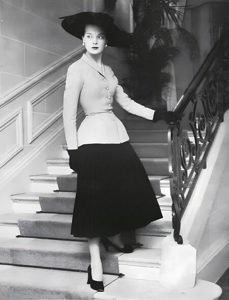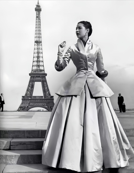 После 1945-го, на волне послевоенного экономического роста и baby-boom, Кристиан Диор запускает New Look: узкая талия, пышная юбка, подчеркнутая «женственность» как компенсация за годы лишений. Фотографы вроде Лилиан Басман и Ирвинга Пенна снимают тонких, почти хрупких моделей в драматическом свете — символ не столько юности, сколько тщательно контролируемой, «отполированной» взрослой женственности. Знаковый пример — обложка Vogue с моделью Джин Патчетт (1950), снятая Пенном: графичное чёрно-белое лицо, красная помада, силуэт New Look.