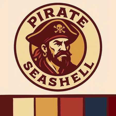 Promt: Vector logo in the style of a circular badge. The central icon is a graphic, stylized portrait of a pirate. The color scheme is burgundy, cream, and dark gold. The text «PIRATE» is written in a bold, rugged, sans-serif font around the edge. The style is modern, minimalist, and clean. Изображение было создано в Bling image Creator.