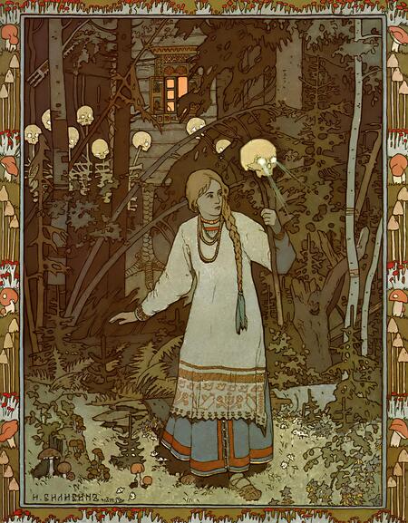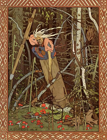 Иллюстрация к книге «Перышко Финист ясна сокола». 1902 // Баба Яга. Иллюстрация к сказке «Василиса Прекрасная». 1900