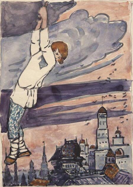 Мальчик висит на облаке. 1896–1898 Эскиз иллюстрации к сказке «Отчего медведь стал куцый»