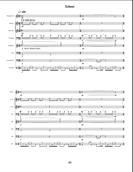 В своей композиции Echoes Леман берет за основу не типичную для джазовой музыки гармонию, а спектр нот Ми и До контроктавы вибрафона. А обертона 8-16 становятся звукорядом для построения мелодий в импровизации.