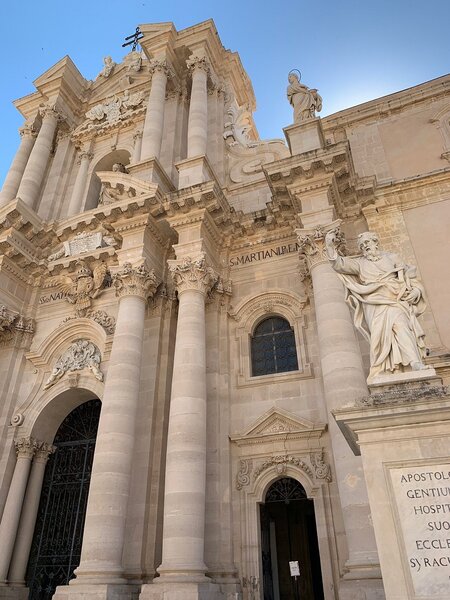 Syracuse Cathedral (Duomo di Siracusa) в Сиракузах — уникальное сочетание античной и сицилийской барочной архитектуры. Кафедральный собор построен на месте древнего греческого храма Афины V века до н. э., чьи массивные дорические колонны до сих пор интегрированы в стены храма и видны как внутри, так и снаружи.