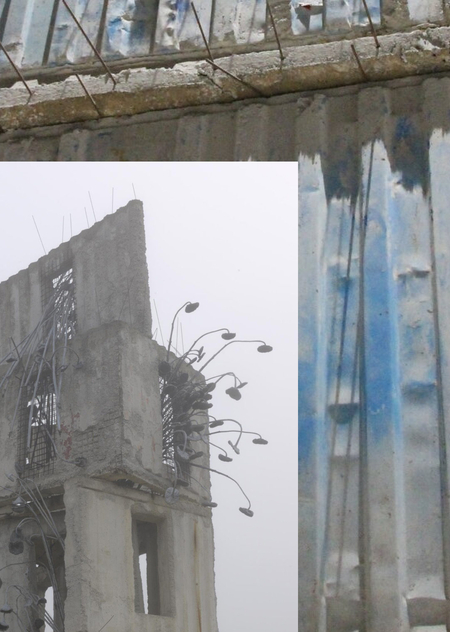 Стоит подробнее рассмотреть форму модулей. Морские контейнеры участвуют в ежедневной перевозке тысячи товаров по земному шару. Я думаю, что в данном случае контейнеры — облик системы потребления, в которую так прочно вшит человек сегодня. Если в тексте книги Еноха дворцы представляли из себя символическое восхождение и приближение к Богу, то сегодня на башнях из контейнеров, произведенных капиталистической системой, держатся трагедии и противоречия, которые человек создает сам.