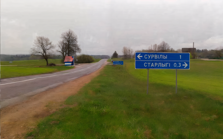 На левой странице машина только подъезжает к Сурвилам, одноименной деревне, обитатели которой носили все одинаковую фамилии.