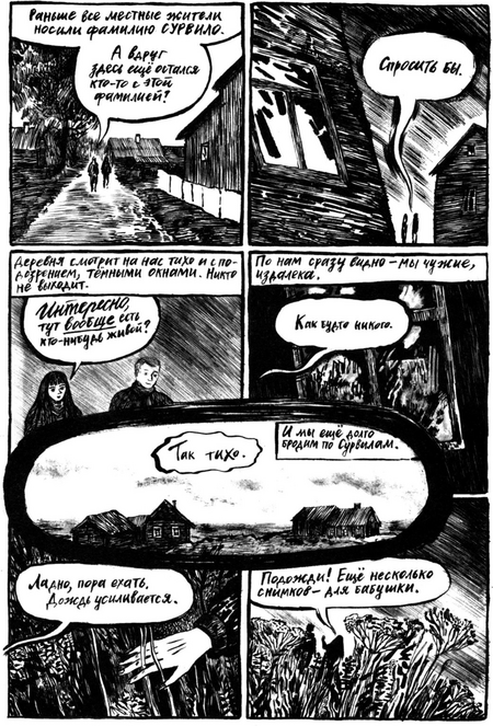 «Сурвило» — это графический роман, корни которого лежат в стремлении Ольги Лаврентьевой реконструировать семейную хронику и обрести связь с прошлым.