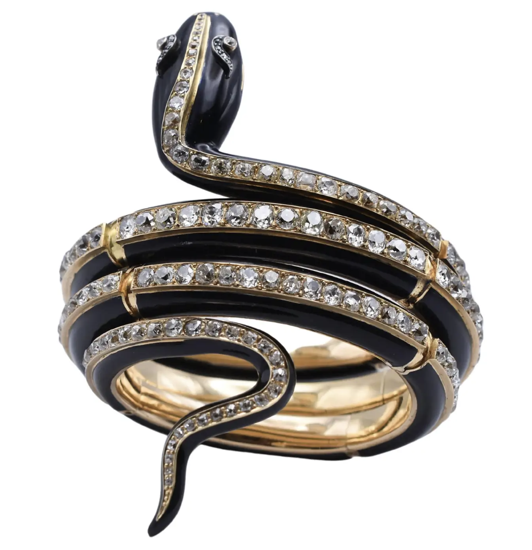 Antique Victorian 18k Gold Black Enamel Diamond Snake Bracelet // 1stDibs. URL: https://www.1stdibs.com/jewelry/bracelets/retro-bracelets/antique-victorian-18k-gold-black-enamel-diamond-snake-bracelet/id-j_17125212/ (дата обращения: 29.11.2025).