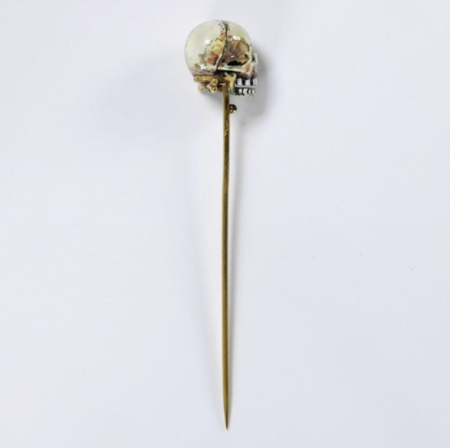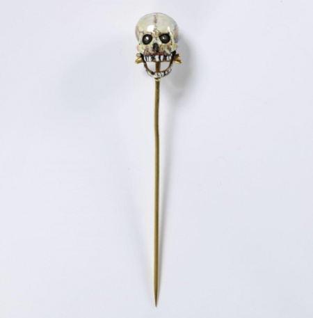 Черепа и «memento mori» — напоминание о смертности как часть Викторианского вкуса к мистике. Классические кольца, броши и булавки с черепами делались как мемориальные подарки или аксессуары для эстетов, интересующихся философией бренности. В примере булавки с черепом благодаря скрытым механикам при подключении к батарее глаза черепа начинали вращаться, а челюсть двигалась: эта механика играла с темой «оживления» мёртвого.