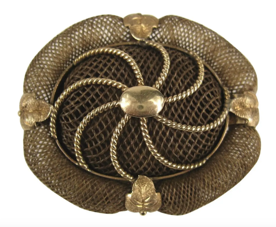 Antique Early Victorian Woven Hair Turquoise Gold Bow Brooch // 1stDibs. URL: https://www.1stdibs.com/jewelry/brooches/brooches/antique-early-victorian-woven-hair-turquoise-gold-bow-brooch/id-j_216124/ (дата обращения: 17.11.2025).