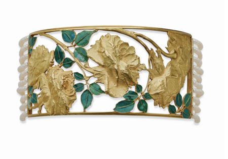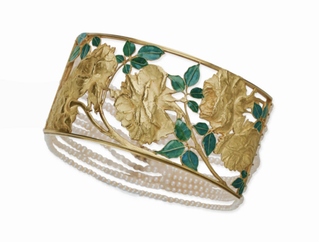 Арт Нуво стал реакцией на прямолинейность Викторианства и эклектизма. Украшения в этом стиле отличали плавные изогнутые линии, асимметрия, органичность форм и новый взгляд на природные мотивы. Яркими лидерами движения были Рене Лалик во Франции и Луис Комфорт Тиффани в США, их работы для галерей и выставок стали визитной карточкой эпохи. Для украшений Арт Нуво характерно использование эмали, резьбы по стеклу, жемчуга, слоновой кости — вместо драгоцённых камней выделялись художественные качества работы, цвет и форма. Украшения Арт Нуво декларировали уход от классовых и «монархических» кодов в пользу индивидуальности, фантазии и эстетического наслаждения природой.
