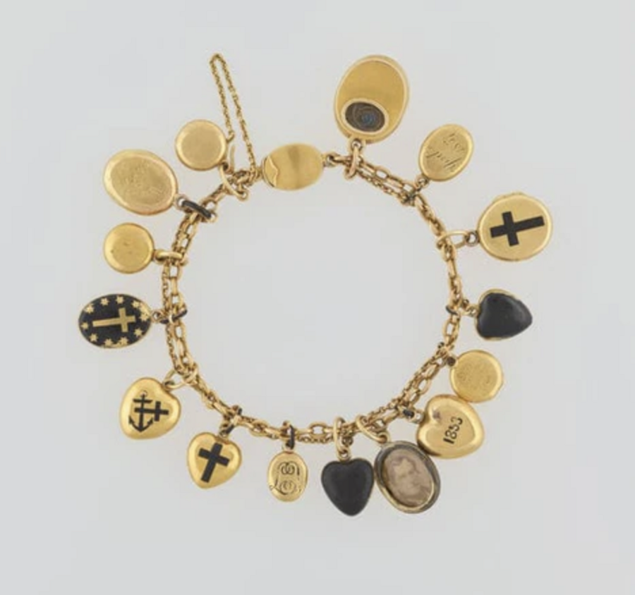 Викторианская эпоха возвела культ индивидуальной памяти и меланхолии в один из главных культурных кодов, сделав украшение не только символом чувства, но и настоящим медиумом личной истории. В это время появилась удивительно сложная визуальная система памятных и траурных ювелирных изделий — медальоны с портретами, броши с волосами покойного, браслеты с эмалированными надписями, миниатюры и символические образы, которые обрели значение настоящих предметов-эмблем.
