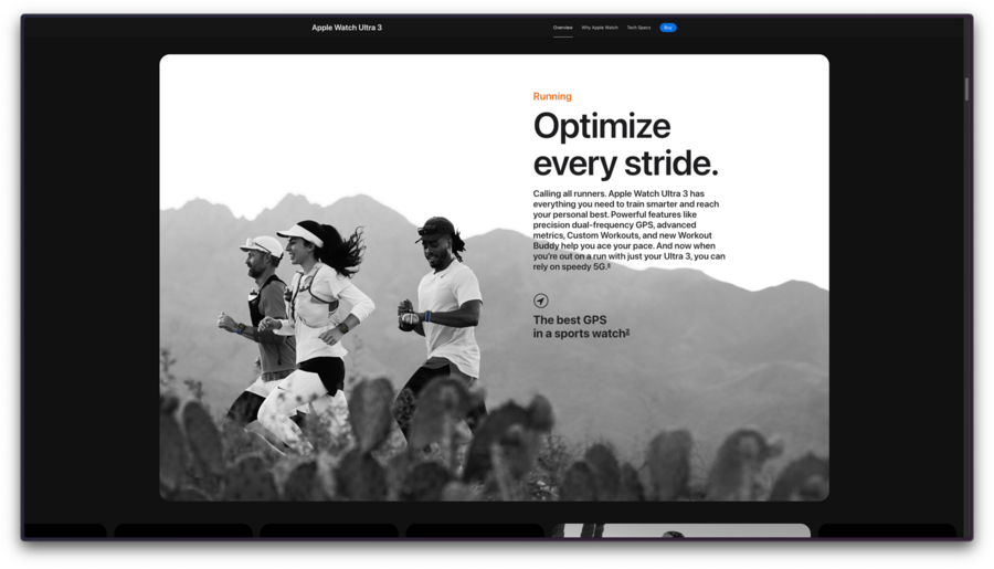 Скриншоты с сайта Apple. Презентация Apple Watch Ultra 2 и Apple Watch Ultra 3