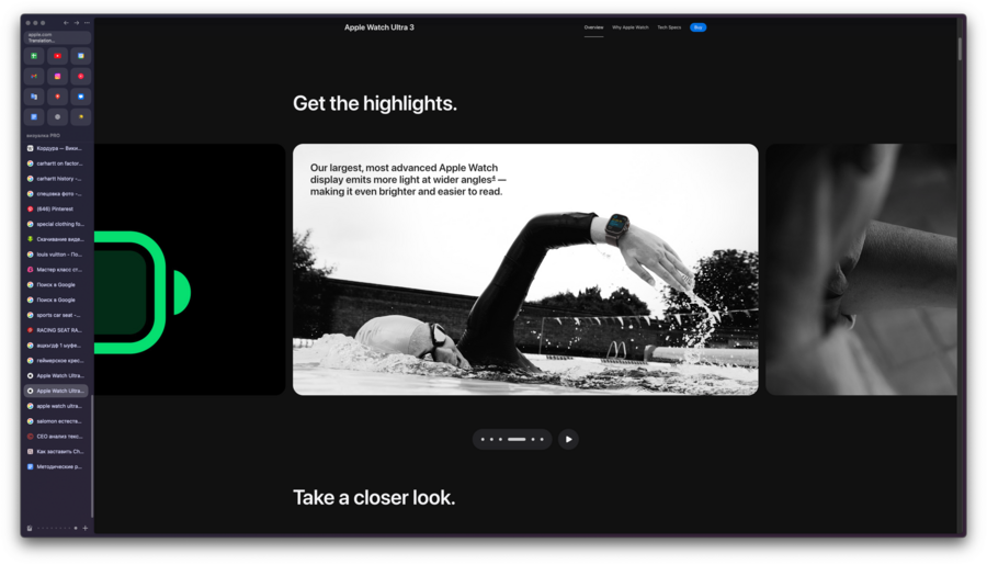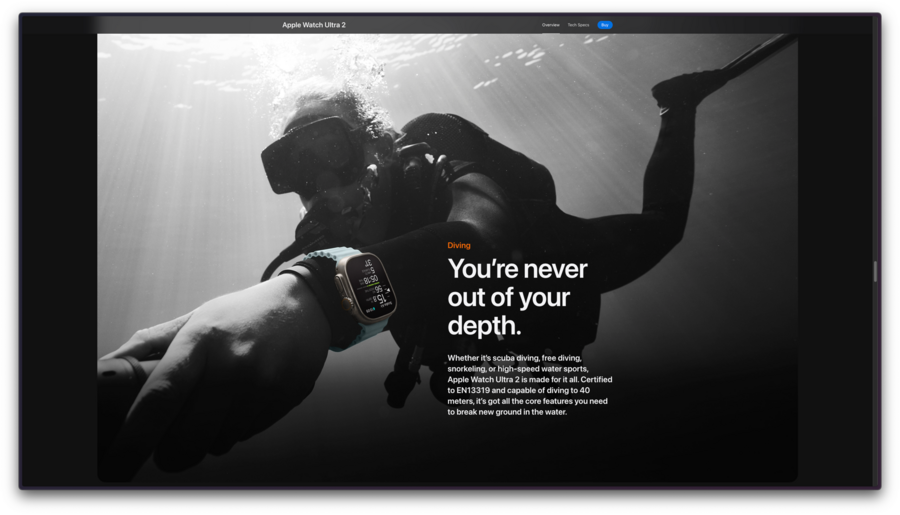 Особенно интересно Apple продвигает свою линейку Ultra, наполняя её функциями, которые точно не для массового пользователя: отслеживание велотренировок, плавание, умение определять технику гребков, и дайвинг, в воду на 40 м в глубину. Эти функции на первый взгляд нужны очень узким кругам лиц, однако они создают видимость устройства будущего, подходящего для любых условий с невероятным функционалом, что продает их массовому пользователю. На продажу более продвинутых часов приходится 25% от всех проданных часов Apple актуальной линейки.