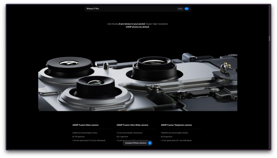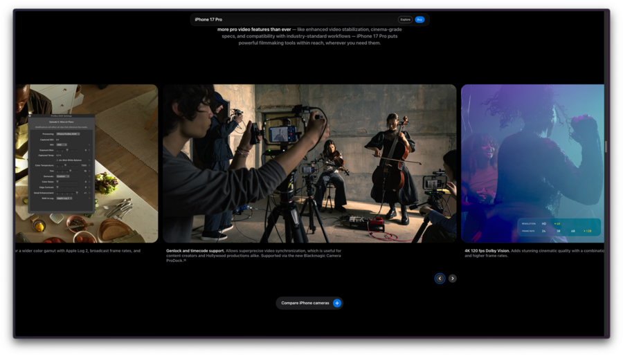 Скриншоты с сайта Apple. Iphone 17 Pro