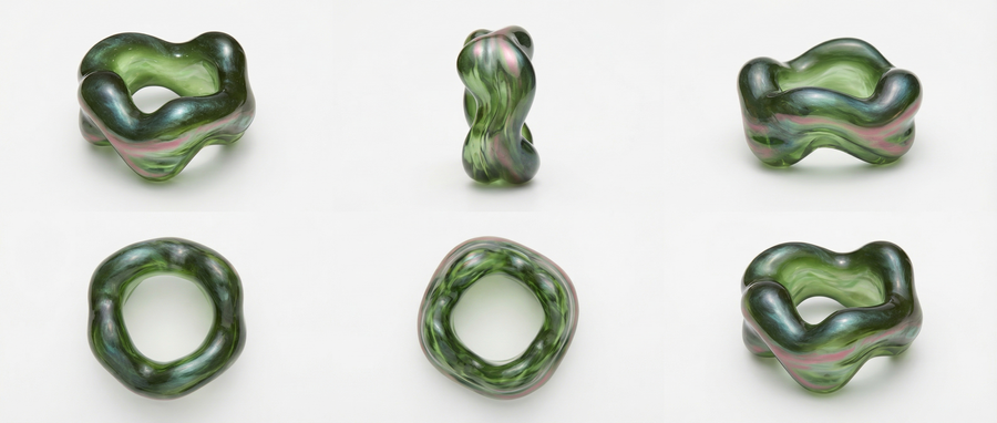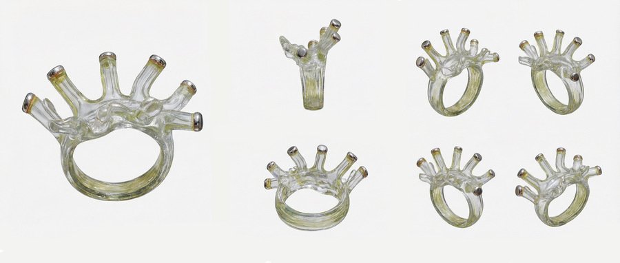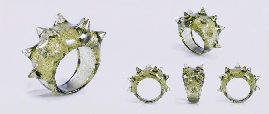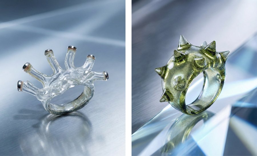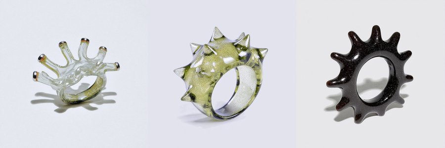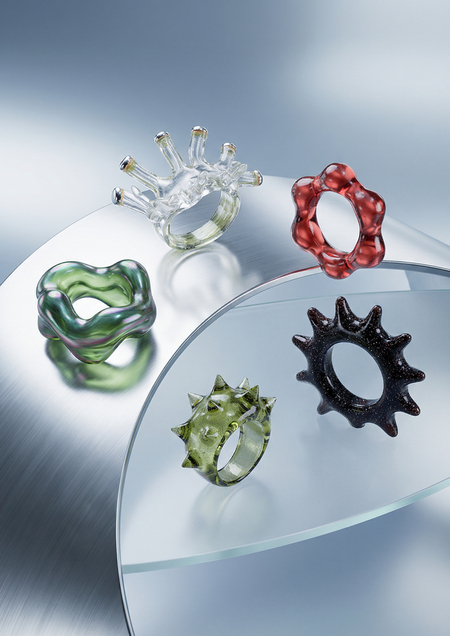 Каждое изделие отражает эстетику глубин: хрупкую, но живую, текучую и непредсказуемую. Полупрозрачные материалы и скульптурные формы имитируют свет, преломляющийся под водой, превращая кольца в маленькие «артефакты океана», созданные как современная интерпретация природных морских объектов.