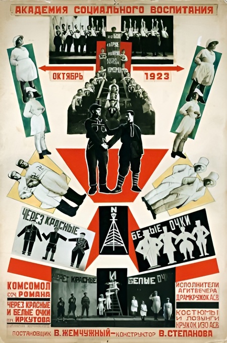 Слева: «Вечер книги», 1924 г. Варвара Степанова Справа: Плакат Академии социального воспитания, 1923 г. Варвара Степанова
