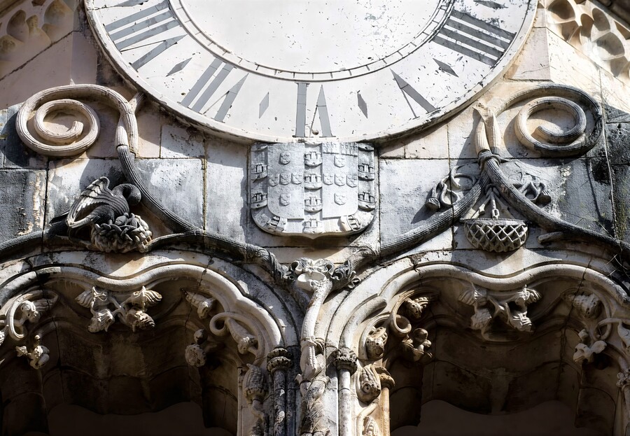 Герб короля во дворике монастыря Santa Maria da Vitória в Баталье/ Армиллярная сфера у входа в музей de Nossa Senhora da Conceição в г. Бея