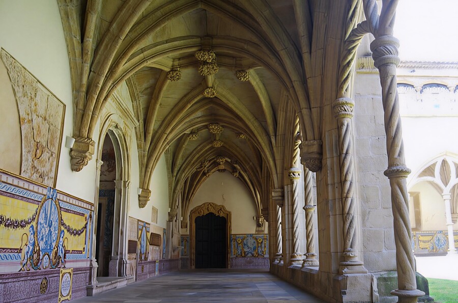 К таким зданиям относится монастырь, построенный родителями Мануэля в 1473 году. Если присмотреться, то можно увидеть тоненький канат, обрамляющий верхнюю часть стены по всему периметру. Пинакли имеют отчетливую спиралевидную форму. Сейчас там находится музей королевы доны Леонор.