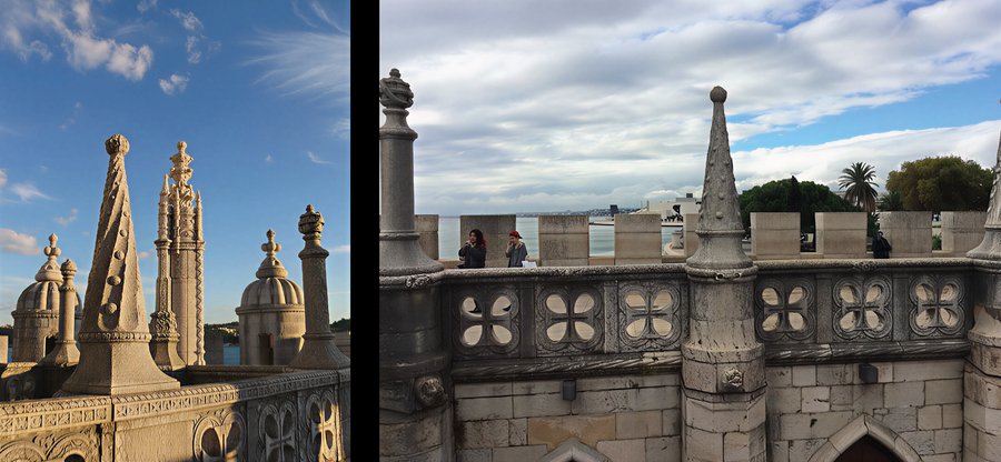В башне Белен в Лиссабоне есть мавританские башенки с рельефной крышей.