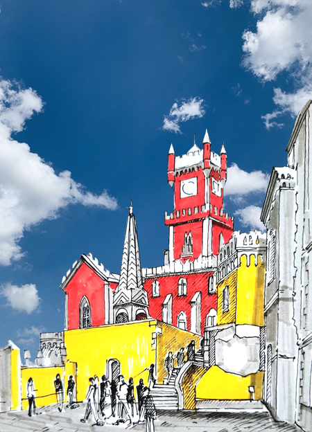 Дворец Nacional de Sintra, Синтра, XV век, арх. Жозеф Сен-Пьер / Дворец Pena, Синтра, XIX век, арх. Вильгельм Людвиг фон Эшвеге