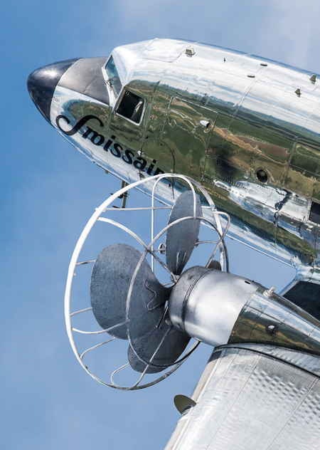 Самое очевидное и простое, это каплевидная форма фюзеляжа самолета. Её идеальность заключена в высоких показателях аэродинамических свойств. Помимо красоты и функциональности, эта форма обрела символичное значение движения вперед, возможности человека приблизиться к линии горизонта и пересечь огромное расстояние в кротчайшие, по тем меркам, сроки. Эту форму хорошо удалось передать Раймонду Лоуи, в образе механической точилки для карандашей. Помимо общего внешнего сходства с корпусом летательного средства, есть и деталь в виде рукоятки точилки. Её изгибы и форма в целом схожи с килем самолёта — вертикальной частью хвостового оперения.