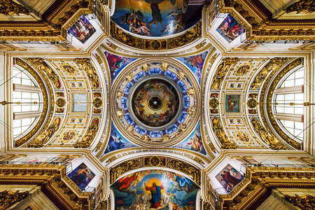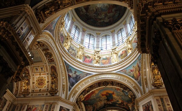 Позолота широко использовалась для подчёркивания важности деталей. В интерьерах Исаакиевского собора и Храма Христа Спасителя золочёные карнизы, капители и декоративные элементы усиливают вертикальные оси и привлекают внимание к куполу.