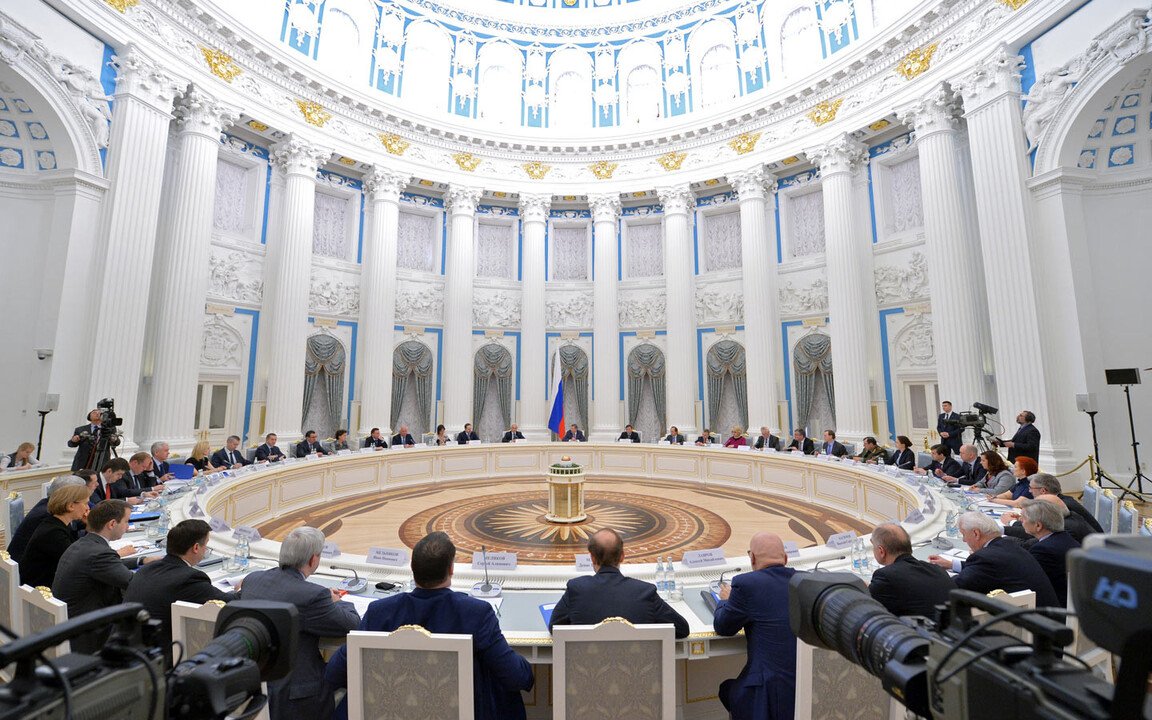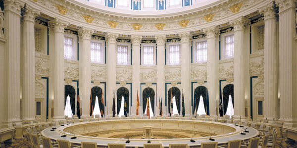 В зале заседаний Сената в Петербурге центральная часть всегда освещена ярче, чем периферия. Это подчёркивает символическую значимость центра и напоминает византийский принцип выделения алтарной части самым сильным светом.