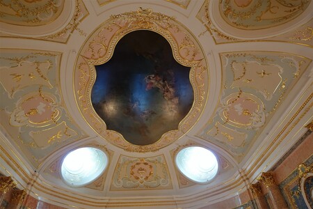Эта идея была перенесена и в светские интерьеры. В парадных залах Мраморного дворца верхний свет подчёркивал главный зал, а зеркала отражали его, словно удваивая эффект.