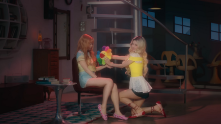 В результате работы появился клип на песню «Right Now», основной идеей которого стала двойственность настоящего и виртуального мира, границы которого размыты, но существующее в одном пространстве. Участницы групп выступают как эталоны красоты и любви, в то время как вымышленный мир Мураками представляет собой противоположность и контраст между айдолами.