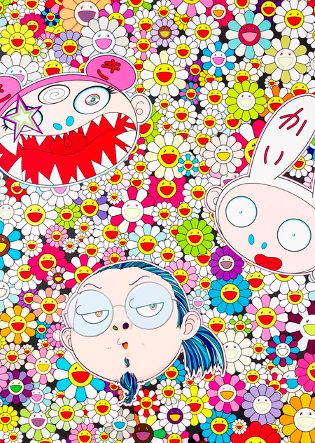 «Каикай Кикки и я; и улыбающиеся цветы». Такаси Мураками. 2008-2011 (дата обращения 18.05.2025) https://sothebys-md.brightspotcdn.com/dims4/default/7b383e8/2147483647/strip/true/crop/2000×1963+0+0/resize/2048×2010! /quality/90/? url=http%3A%2F%2Fsothebys-brightspot.s3.amazonaws.com%2Fmedia-desk%2F54%2F13%2F4fe43b1b40e9a110485b2a3522d1%2F007l20168-bnl5y-01-group-02.jpg