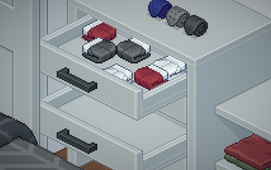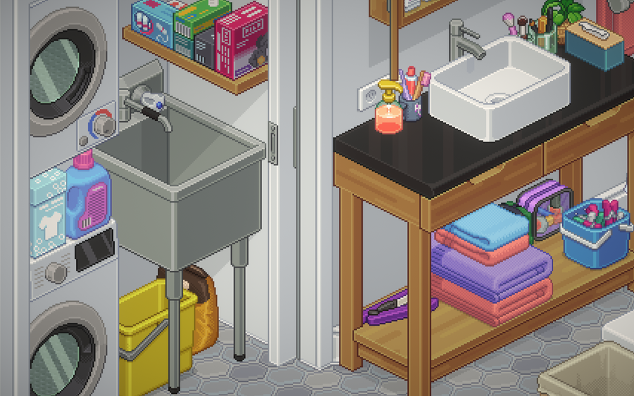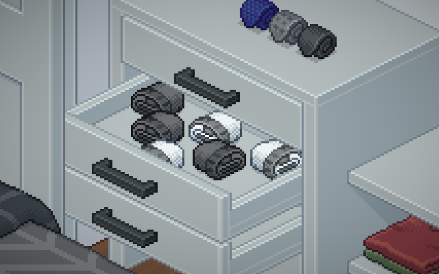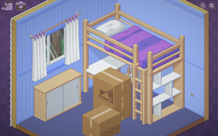 Процесс расстановки вещей — это ядро игрового опыта. В детской комнате это просто и интуитивно: вещь занимает любое свободное место. Но с каждым новым переездом этот жест усложняется. В общежитии или квартире с соседями приходится считаться с чужими вещами, а в доме парня — буквально втискивать свою идентичность в промежутки между его собственностью. Героини приходится сдвигать его книги, чтобы освободить место для своих, или искать свободный сантиметр на полке для носков, тогда как у него их два (оба полупустые). Это уже не просто расстановка, а тактический маневр, переговоры с пространством, где каждая успешно поставленная вещь — это маленькая победа.