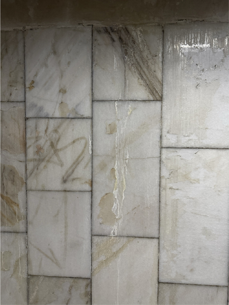 Потёртые поверхности — это почти как отпечатки, только растянутые во времени. Металл блестит там, где люди держатся, чтобы войти в подъезд. Пластик темнеет от ладоней в метро. Камень становится гладким от того, что к нему каждый день прижимается плечо проходящих. Эти следы — «слабые» жесты в понимании де Серто: они не стремятся изменить город, но всё равно оставляют свой след, потому что повторяются снова и снова. Контакт становится формой взаимодействия, даже если человек не осознаёт, что оставляет след.