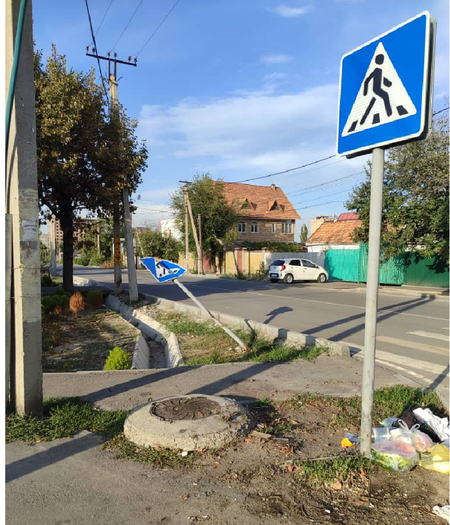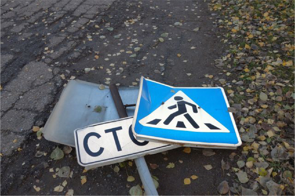 Сломанный дорожный знак, Хабаровск. Фотография из открытых интернет-источников, 2014