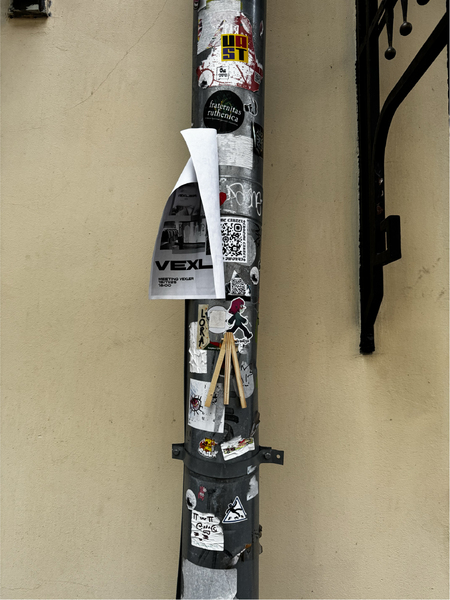 Когда смотришь на эти следы, возникает странное ощущение присутствия других людей — тех, кто был здесь до тебя, и тех, кто придёт после. Место перестаёт быть пустым и анонимным: у него появляются слои памяти, пусть и очень короткой, почти мгновенной. Иногда наклейка вызывает улыбку, иногда — раздражение, иногда — ощущение домашности, потому что этот символ уже встречался в другом районе.