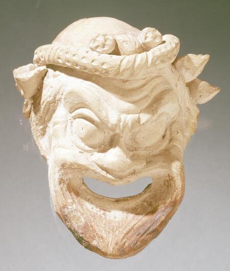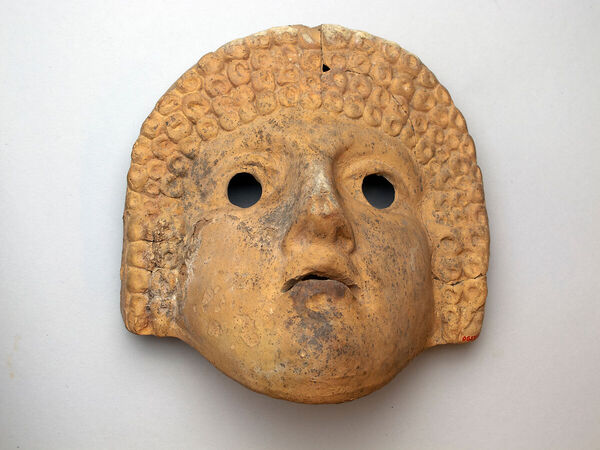 Маска была одним из важнейших элементов Древнегреческого костюма, которая заключала в себе как практические так и символические функции. В течение античной эпохи маска меняла свой внешний вид: от гармоничных черт лица, которые незначительно различались для разных персонажей и которые были вдохновлены классической скульптурой V века до н. э. она перешла к более условным чертам, предполагающим различия для выведенных к IV век до н. э. типажей персонажей.
