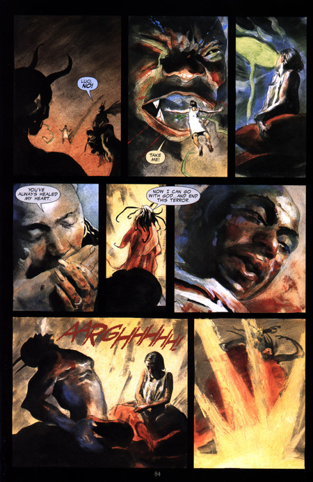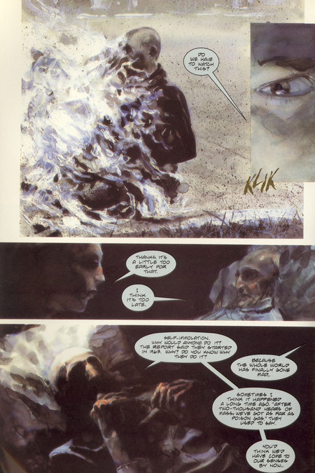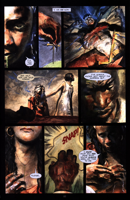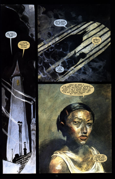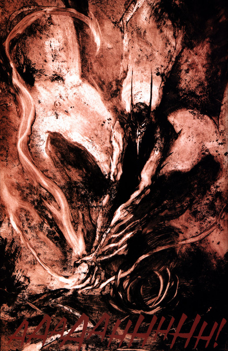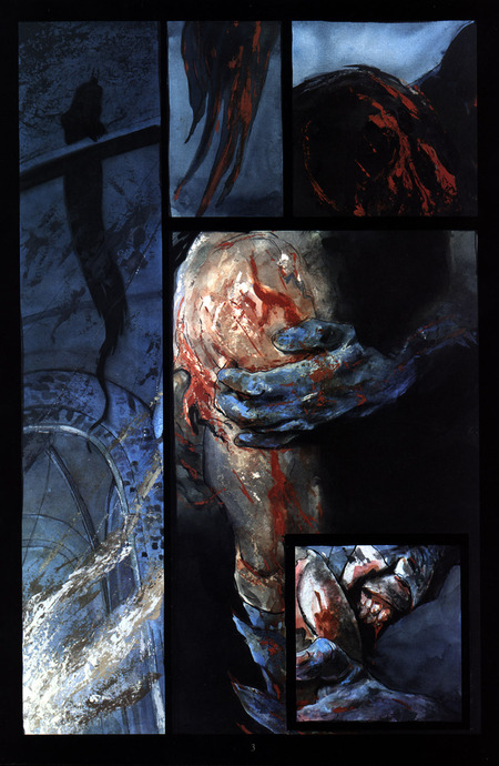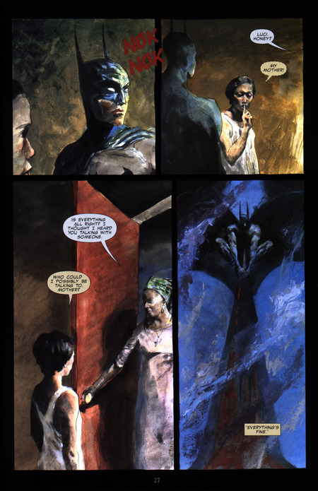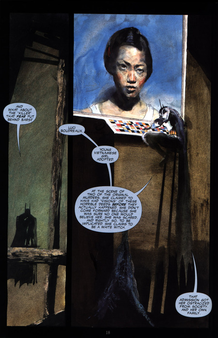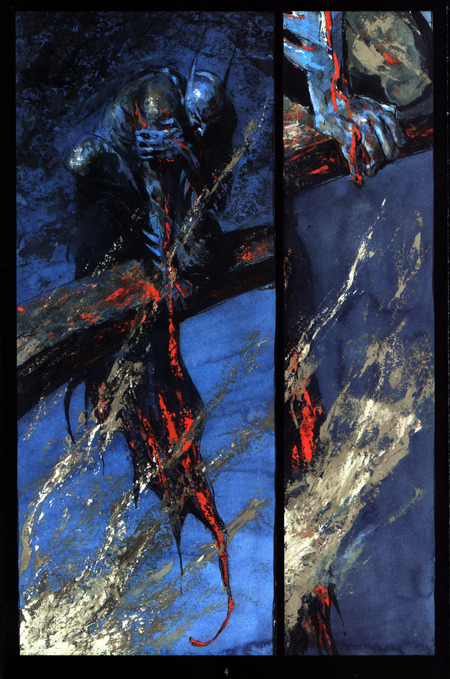 Схожий эпизод находит место и в «Batman: Harvest Breed». Здесь единое стилистическое решение для человеческой фигуры и пространства, окружающего его, выбрано для иллюстрации снов героя с искаженными и гипертрофированными кошмаром образами.