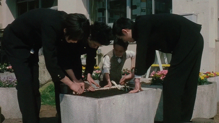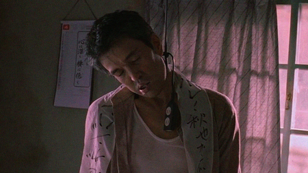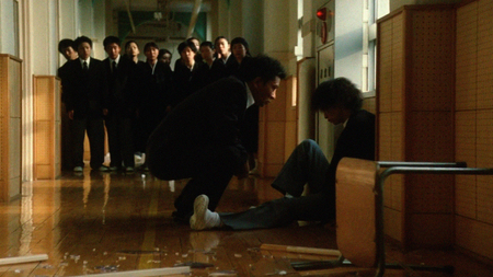 На фоне еще не успевших зацвести деверьев один из героев фильма спускается с холма. Он оставляет позади свою мечту связанную с игрой в бейсбол и примыкает к якудза. Ведь варианта на жизнь лучше у него, вероятно, просто нет. Замедленная съемка, неторопливые, размеренные дживения актера и минорная болезненно ревущая музыка, будто из титров, ставят точку в итории этого персонажа.