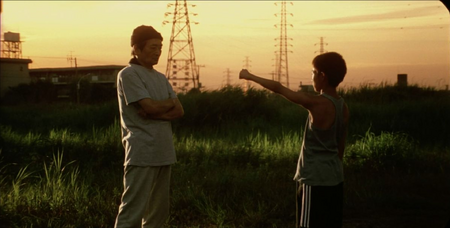 На протяжении фильма можно увидеть, как через довольно жестокие способы воспитания, между сыном и отцом возникает особая прочная связь. На изображениях выше видно, как из относительно дружелюбного знакомства с боксом поединки перерастают в серьезные и напряженные сражения за убеждения. Это достигается с помощью фона, окружающего героев, и монтажа.