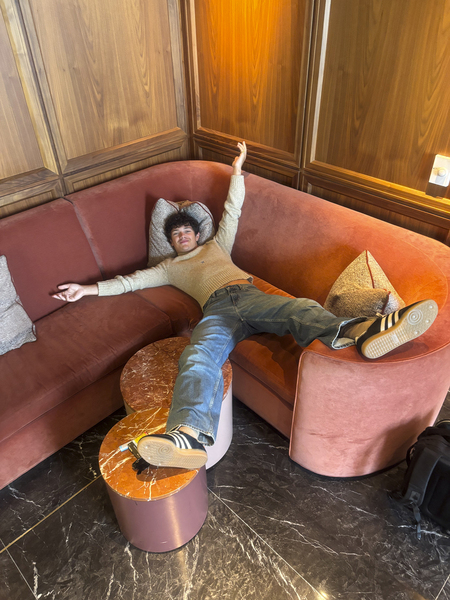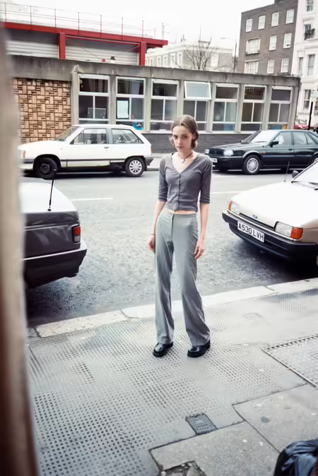 На них фотограф как-будто случайно застал модель посреди улицы, и они вдвоем быстро придумали позу.