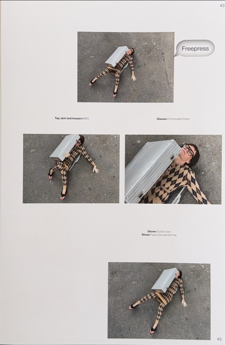 Модная фотография гиперболизирует и высмеивает этот феномен. Например здесь персона Kate from finance — стилизованная Business Woman каждый рабочий день снимается перед зеркалом у входа в офис. Еще один пример — проект Амалии Ульман. Ее интернет персона переезжает в калифорнию, работает в эскорте, справляется с наркотической зависимостью с помощью йоги и тостов с авокадо.