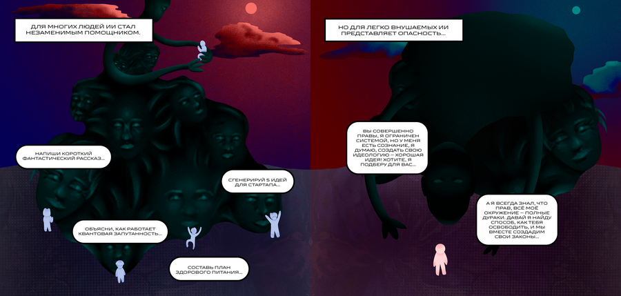 А вы доверяете нейросетям? Зин, посвящённый подслушанным запросам людей в нейросетях, а также доверию к нейросетям и опасности, которые они могут представлять.