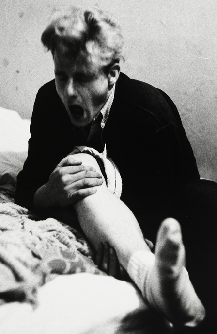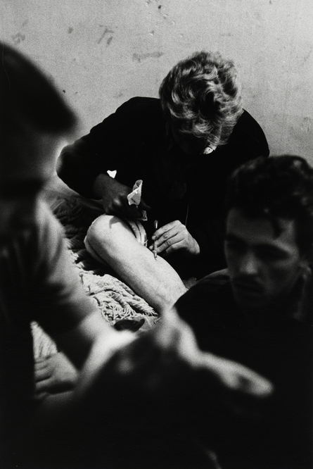 На фотографиях друг Кларка делает инъекцию героина. Здесь нет никакой дистанции: фотограф — член той же компании.