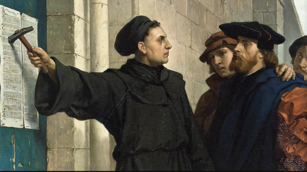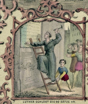 Гравюра XIX века. Мартин Лютер вывешивает «95 тезисов» на двери церкви в Виттенберге. 31 октября 1517 год https://www.vokrugsveta.ru/vs/article/3440/